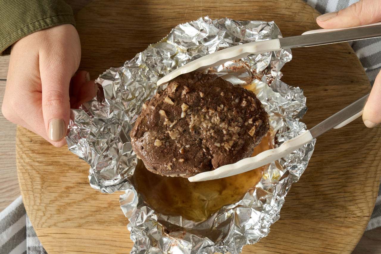 -Placez le plat dans un sac congélation SafeLoc® Toppits®, et pour la décongélation, immergez le dans un grand saladier d’eau froide. Cela permet une décongélation plus douce et uniforme.