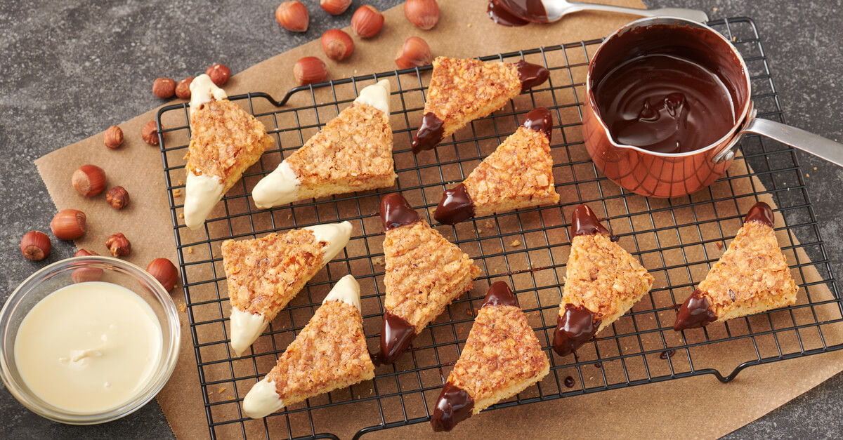 In combinatie met een delicate chocoladelaag en een romige kern worden ze het absolute favoriete recept in de koekjestrommel.
